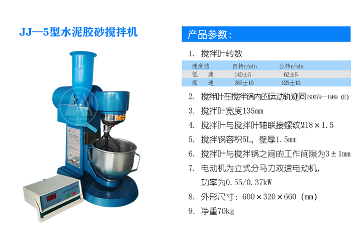 是根據中國建材院水泥所的統一圖紙制造,符合我國執行國際強度試驗方法(ISO679—1989(E))的標準設備。也可代替GB3350.1-82用作GB177—85水泥膠砂試驗方法的攪拌機。并可用作美國標準、歐洲標準、日本標準水泥試驗的凈漿、砂漿攪拌機。
